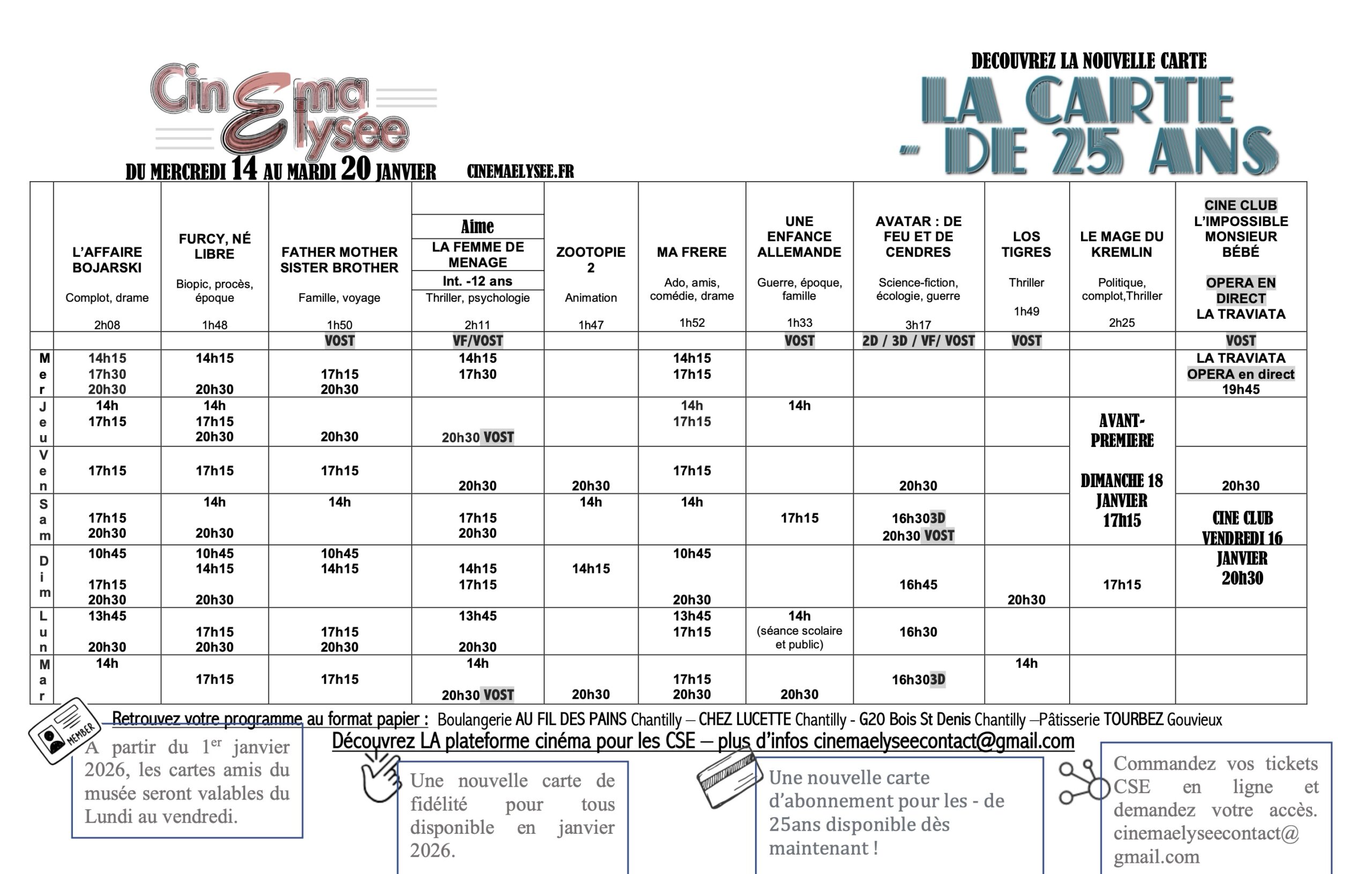 En savoir plusUne offre spécialement adaptée aux comités d’entreprises. Le ticket C.E est valable de 6 à 12 mois en fonction de la quantité commandée. Il est valable tous les jours, toutes les séances, sans conditions, 3D inclus (hors achat lunettes et hors séances spéciales). Tarif unique de 6 €.
