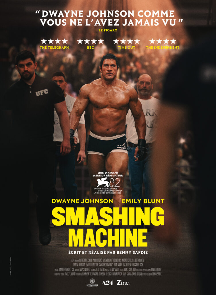 Dwayne Johnson est Mark Kerr, légende du MMA des années 90, surnommé « The Smashing Machine » tandis qu’Emily Blunt incarne son épouse, Dawn Staples.